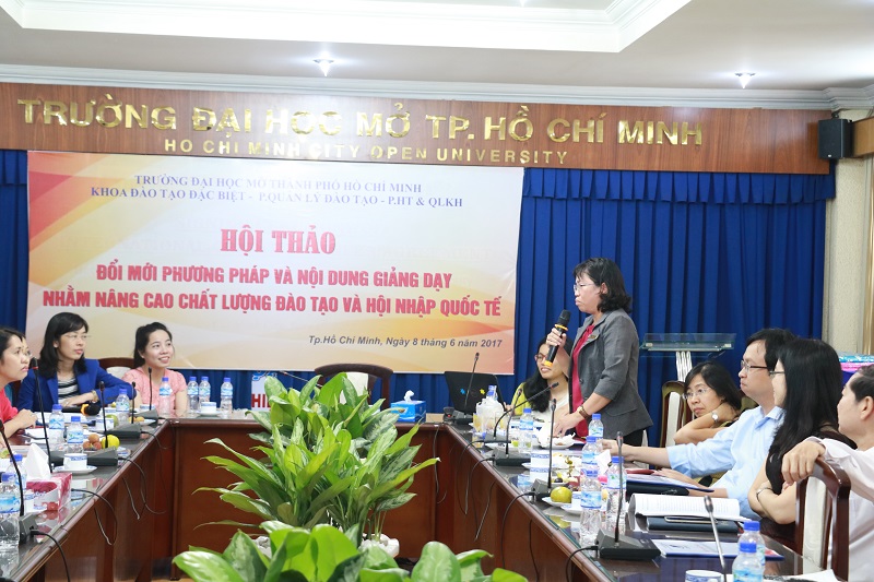 With the purpose of improving the teaching quality of lecturers and students’ learning activities in the fields of study of the Open University of Ho Chi Minh City, promoting the initiative and responsibility of lecturers and officials in finding solutions. On June 8, 2017, the school of advanced study, in collaboration with The Office of Academic Affairs and the Office of Cooperation & Research Management of the University, organized the conference Innovating teaching methods and contents to improve training quality and international integration” with the participation of Assoc. Prof. Ph.D. Nguyen Van Phuc, Secretary of the Party Committee, Rector of the University, and the representative of faculties and departments in the University.