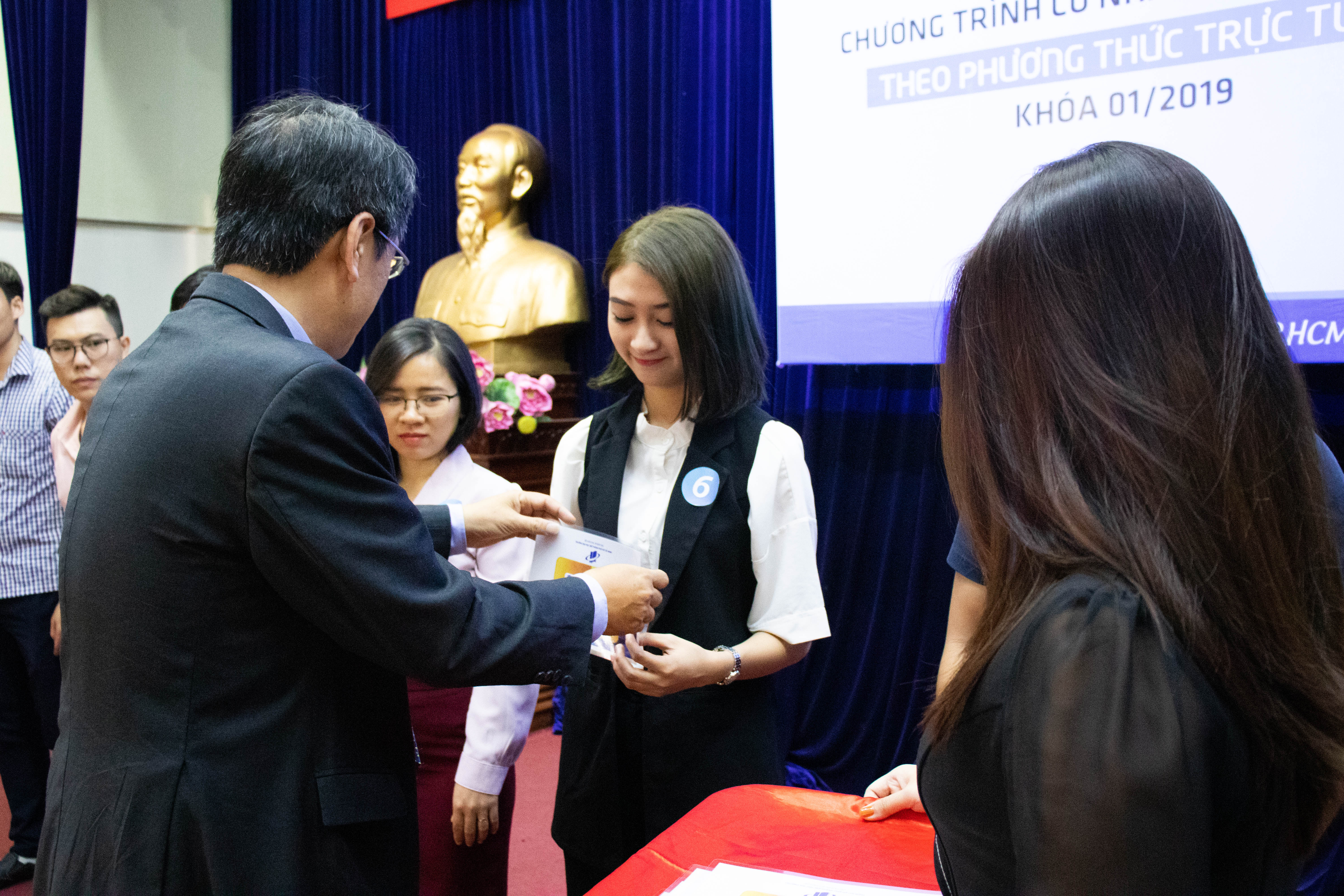 With nine fields of training and more than two years of operating, the Online Bachelor Program has had more than 2000 students. As an honor representative of more than 200 new students of course I, Mss. Tran Ngoc Dieu Linh-a new student of the English language said: “I realized that I needed to enhance my knowledge and skills in English Language to have a better career. After searching, I knew that this was a prestigious program that had a flexible learning mode and thus that was the best choice for me. I will get the degree when I graduate. Hence, I decided to register.”