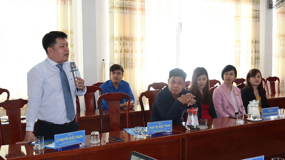 Representative of the Open University of Ho Chi Minh City. Ho Chi Minh, Ph.D. Le Nguyen Quoc Khang – Vice-Rector gave a speech introducing distance learning programs and methods implemented by the University. In the opening statement, the Vice-Rector congratulated the freshmen and encouraged the spirit of learning, persistently overcoming difficulties in time to complete the goal of cultivating and developing skills.