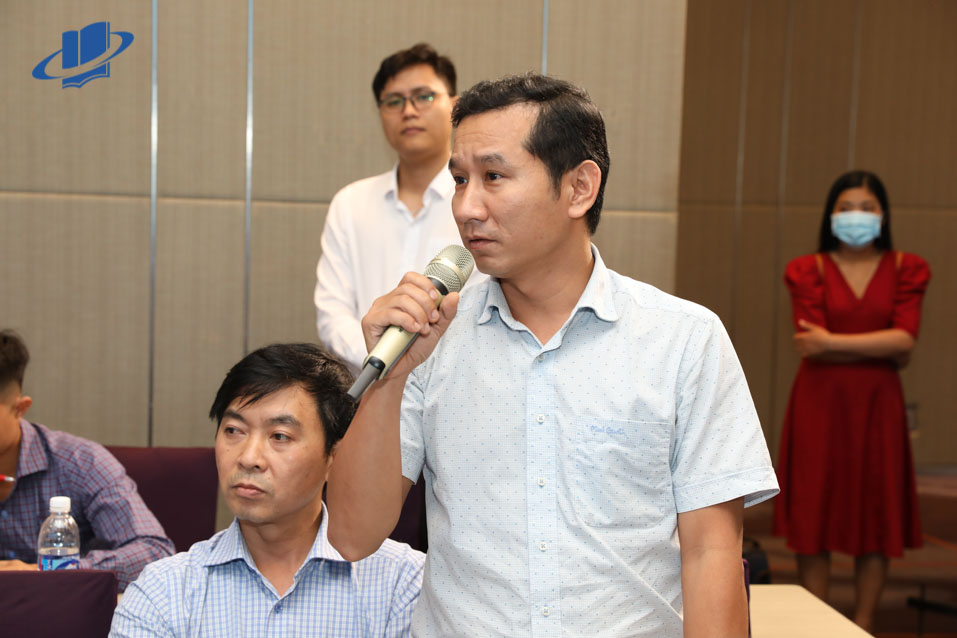 The representatives and reports had a lively conversation ( Assoc. Prof. Ph.D. Vu Thi Tu Anh, Prof. Ph.D. Nguyen Minh Ha, Ph.D. Phan Thi Ngoc Thanh, Ph.D. Truong Tien Tung, and Mr. Nguyen Van Thai).