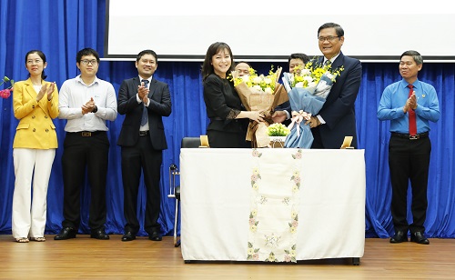 Representatives of the Confederation of Labor, there were Mr. Pham Chi Tam – Vice President, Ms. Huynh Thi Ngoc Lien – permanent member – Head of the Women’s Department, and Ms. Vo Thi Minh Phuong – Deputy Head of the Women’s Department; on the side of VNPT Business Center in Ho Chi Minh City, there were Ms. Trinh Thi Thu Thao – Director, Mr. Do Duc Trung – Deputy Director, Mr. Do Quang Trang – Sales Director of Gia Dinh Area; On the side of the University, there was the participation of Prof. Ph.D. Nguyen Minh Ha – Rector, Ph.D. Le Nguyen Quoc Khang – Vice-Rector, Ms. Ho Minh Nhien – Vice President of University Trade Union, Board of Directors of Online Training Center and representatives of leaders of faculties, departments, and the participation of New students of course 01/2021.